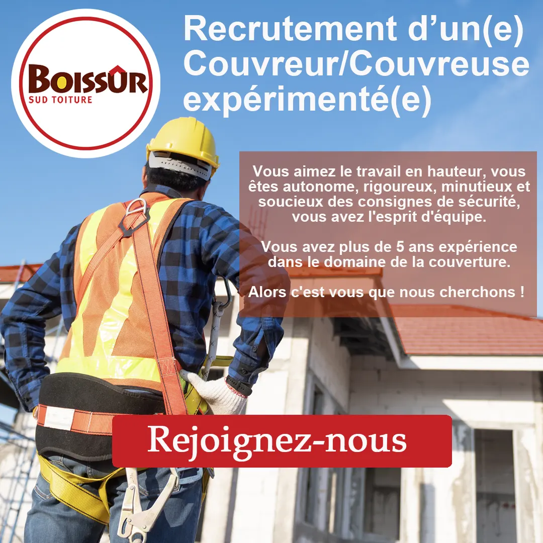 Nous recherchons un(e) couvreur/couvreuse expérimenté(e) sur la région Provence-Alpes-Côte d'Azur.